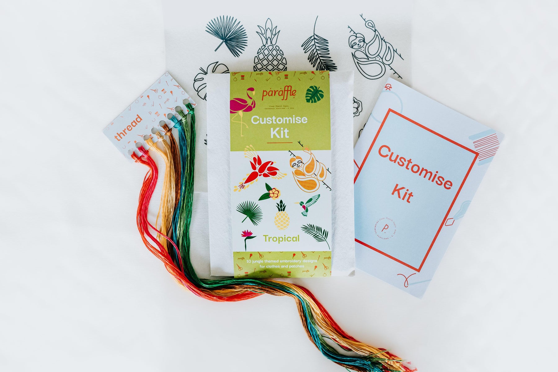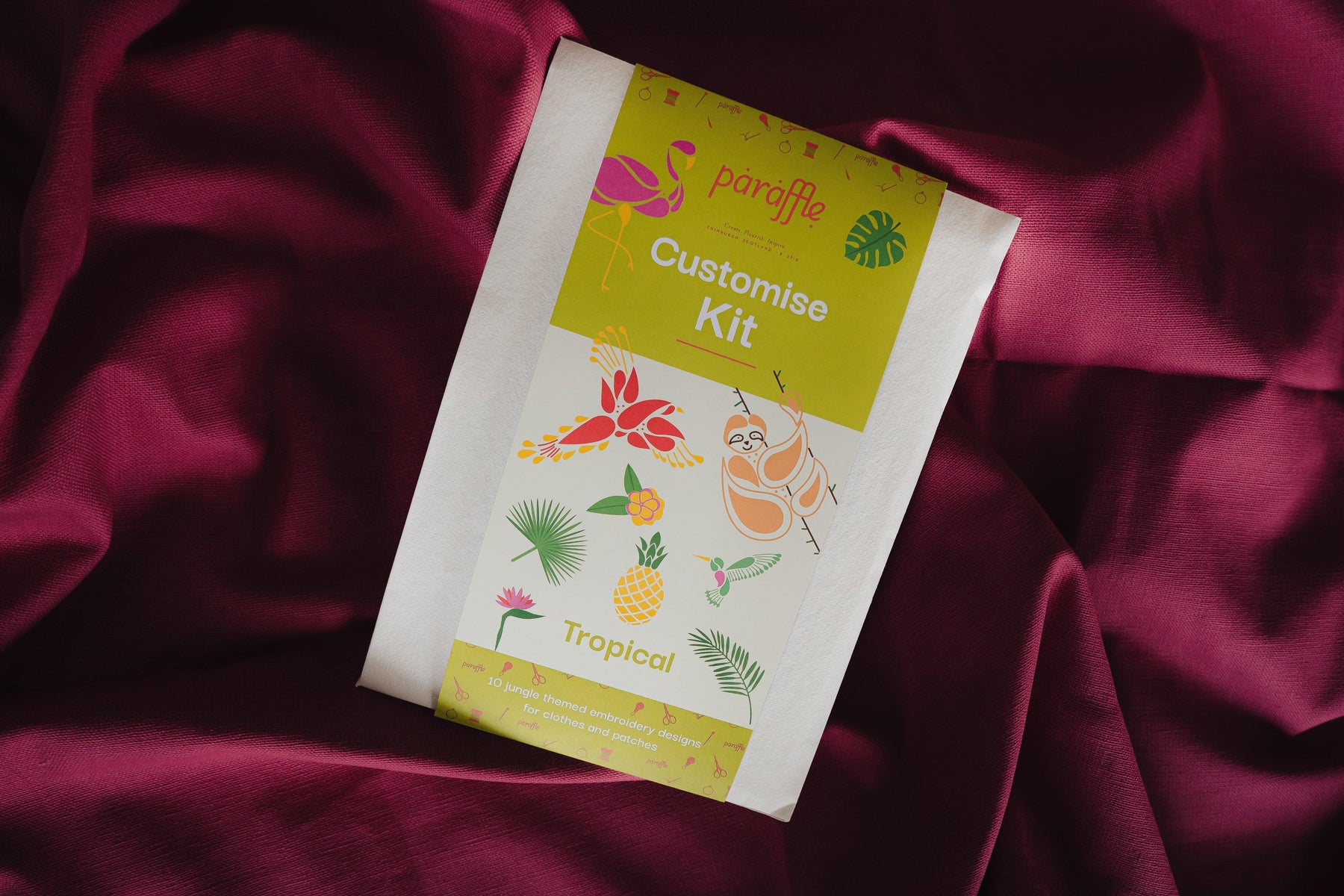 Using mini versions of Paraffle’s popular Flamingo, Hummingbird, Pineapple, Sloth, and Parrot designs, plus a new Monstera, and more Tropical plants, this kit will help you ditch fast fashion and extend the life cycle of your clothes. This jungle themed kit includes 8 vibrant DMC thread colors, which you can use creatively to make your own unique designs. The designs are printed on self-adhesive paper that dissolves in water. You simply need to cut out your transfer, apply it to your clothes, stitch, then rinse it away! What’s more, the envelope your kit comes in is made from 100% recycled cotton rags, is fairtrade, and can be used again. What’s not to love?!