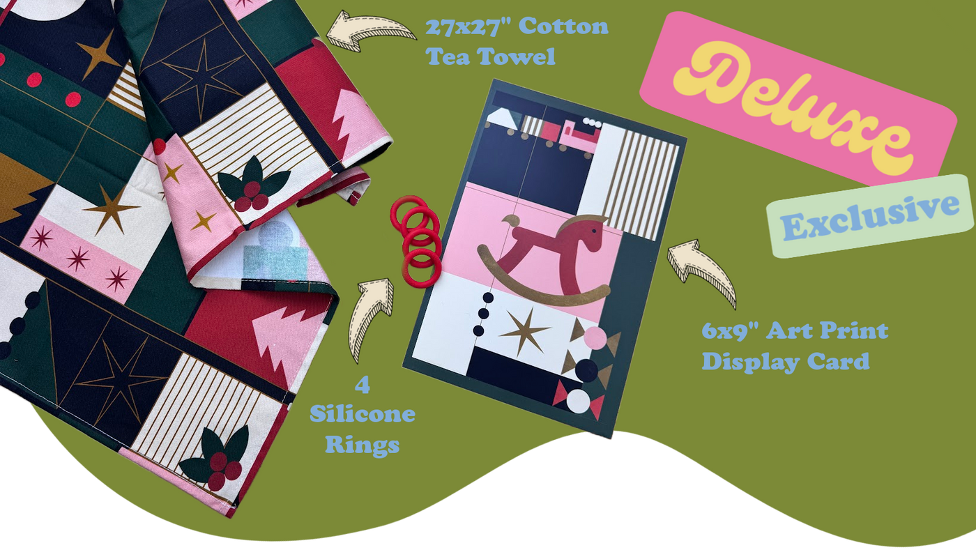 We'll send you 4 printed pattern cards and the pre-counted 10" cotton loops to make all four of that month's seasonally themed potholders.