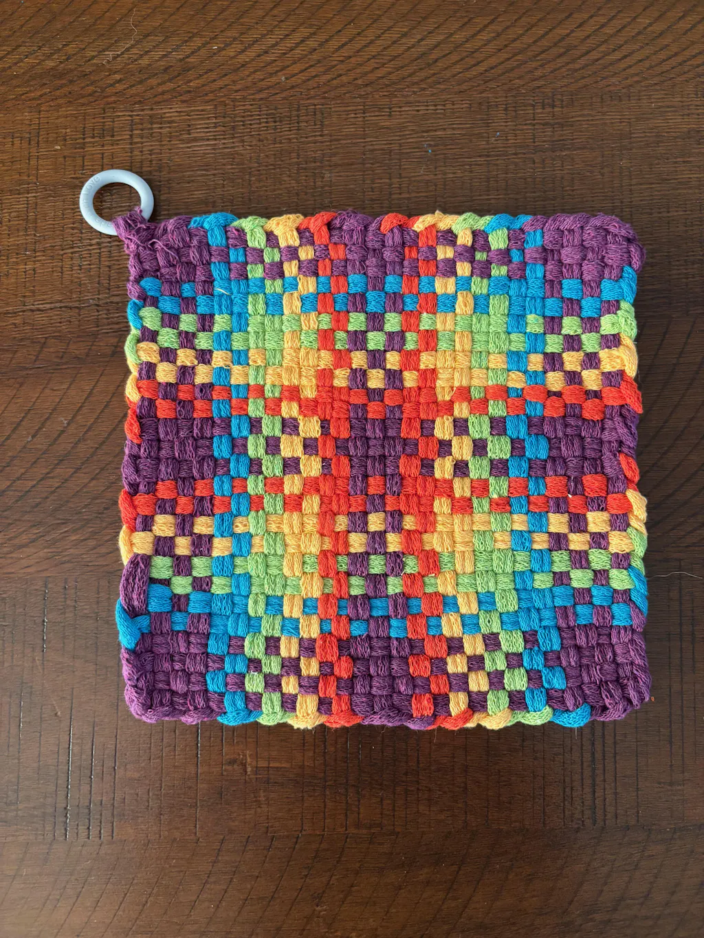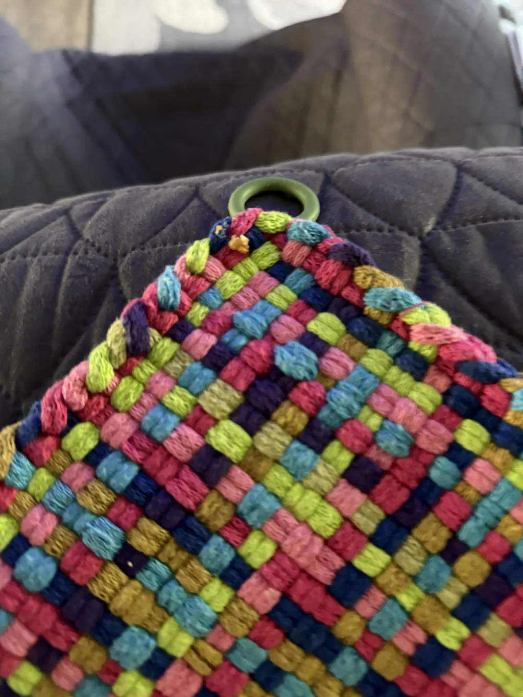 Watch this video on Facebook to see how to install the ring on a potholder.