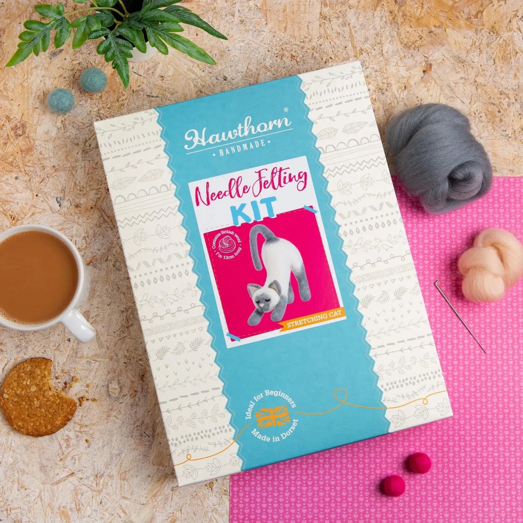 Stretching Cat Needle Felting Kit-Needle Felting-Hawthorn Handmade-Acorns & Twigs