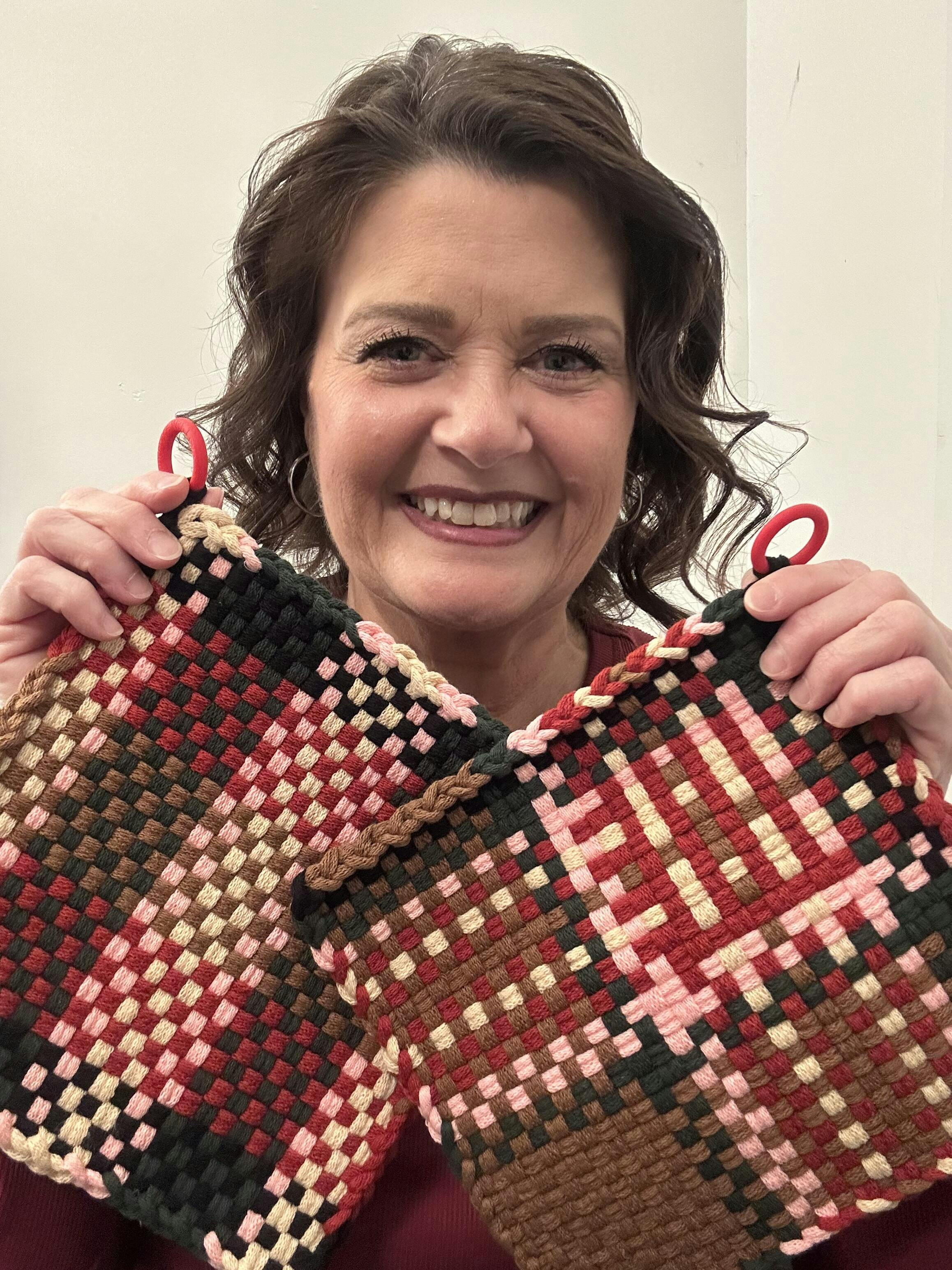 - putting on your potholders for hanging or