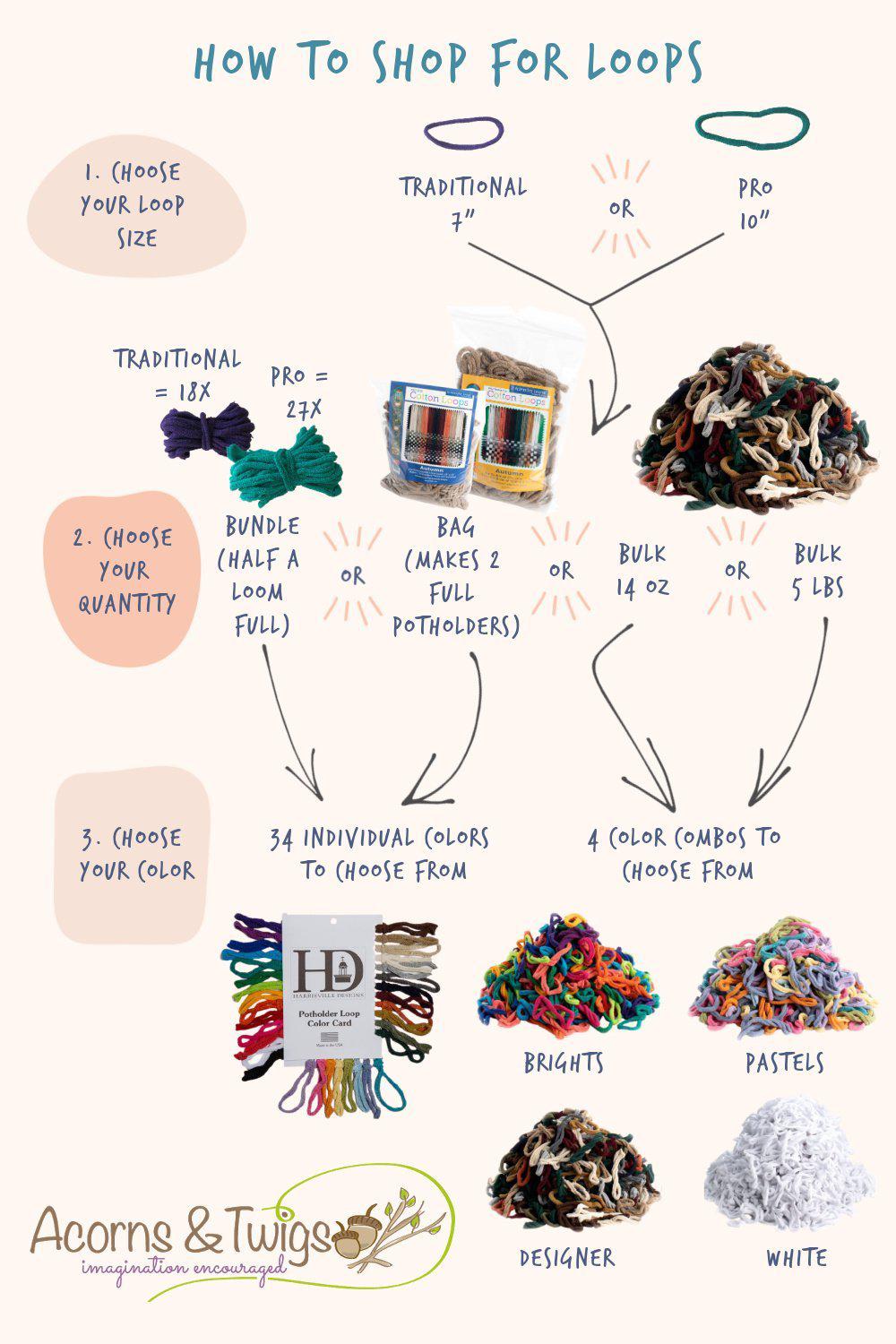 •Enough cotton loops in mixed bright colors to make 6 potholders