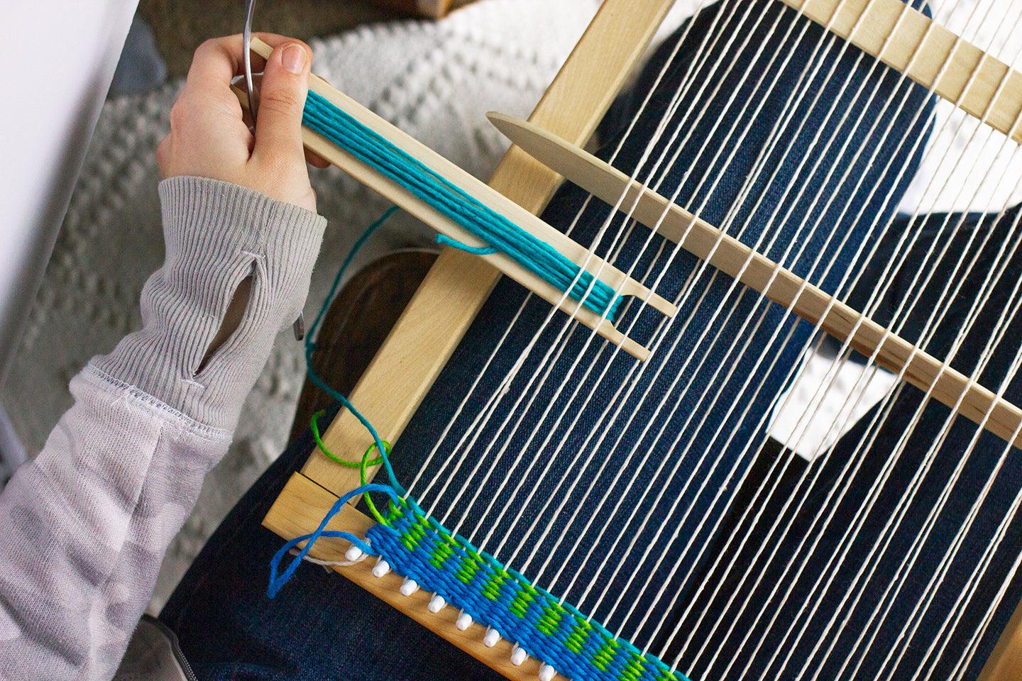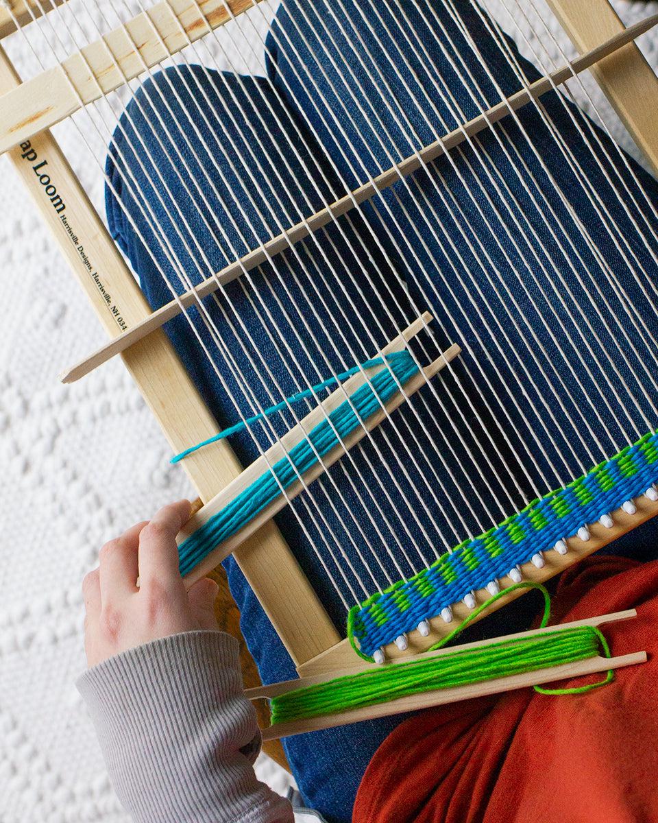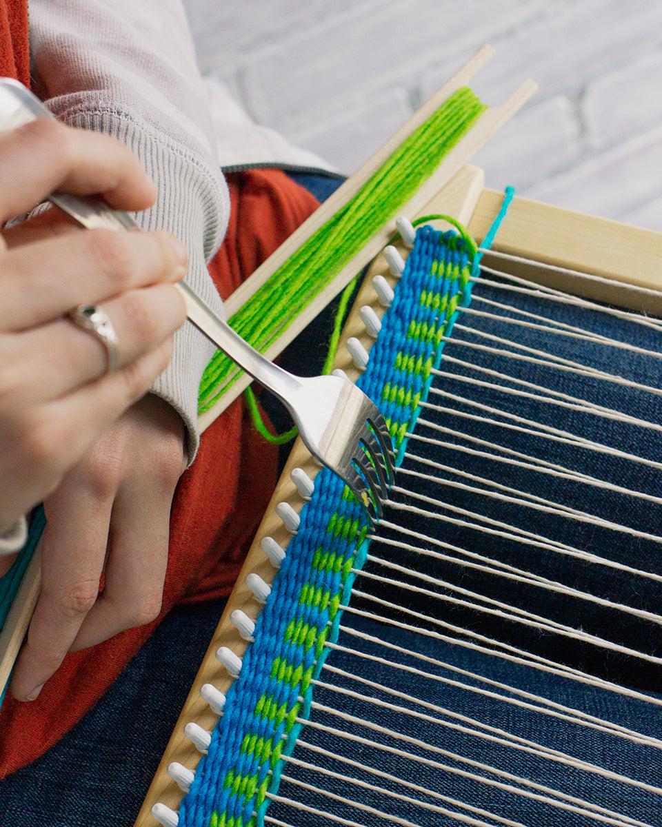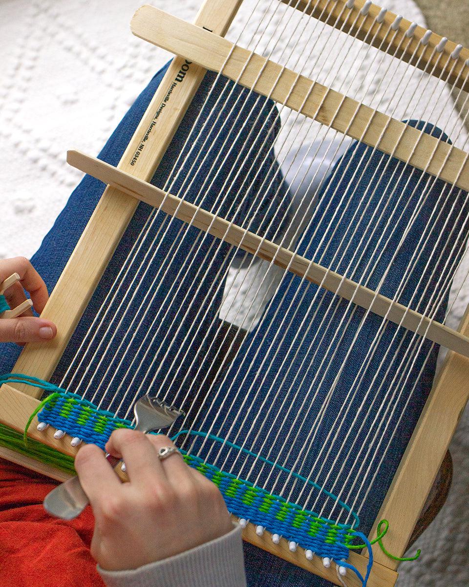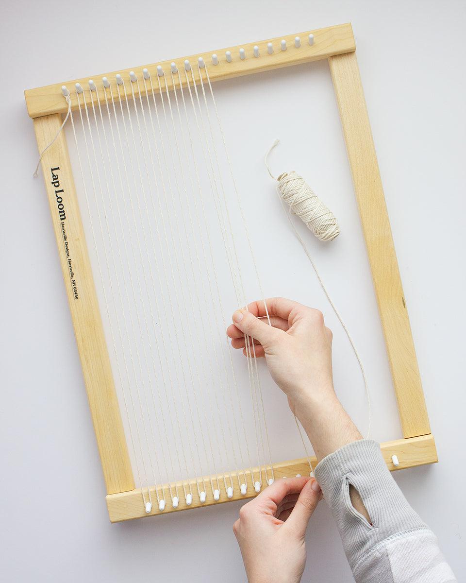 The portable LapLoom B is a larger version of LapLoom A and is made of hardwood with slanted nylon pegs so the weaving won't fall off. If you want to create projects larger than LapLoom A, LapLoom B measures 14-1/2" x 18-1/2" with a finished product up to 12" x 17".