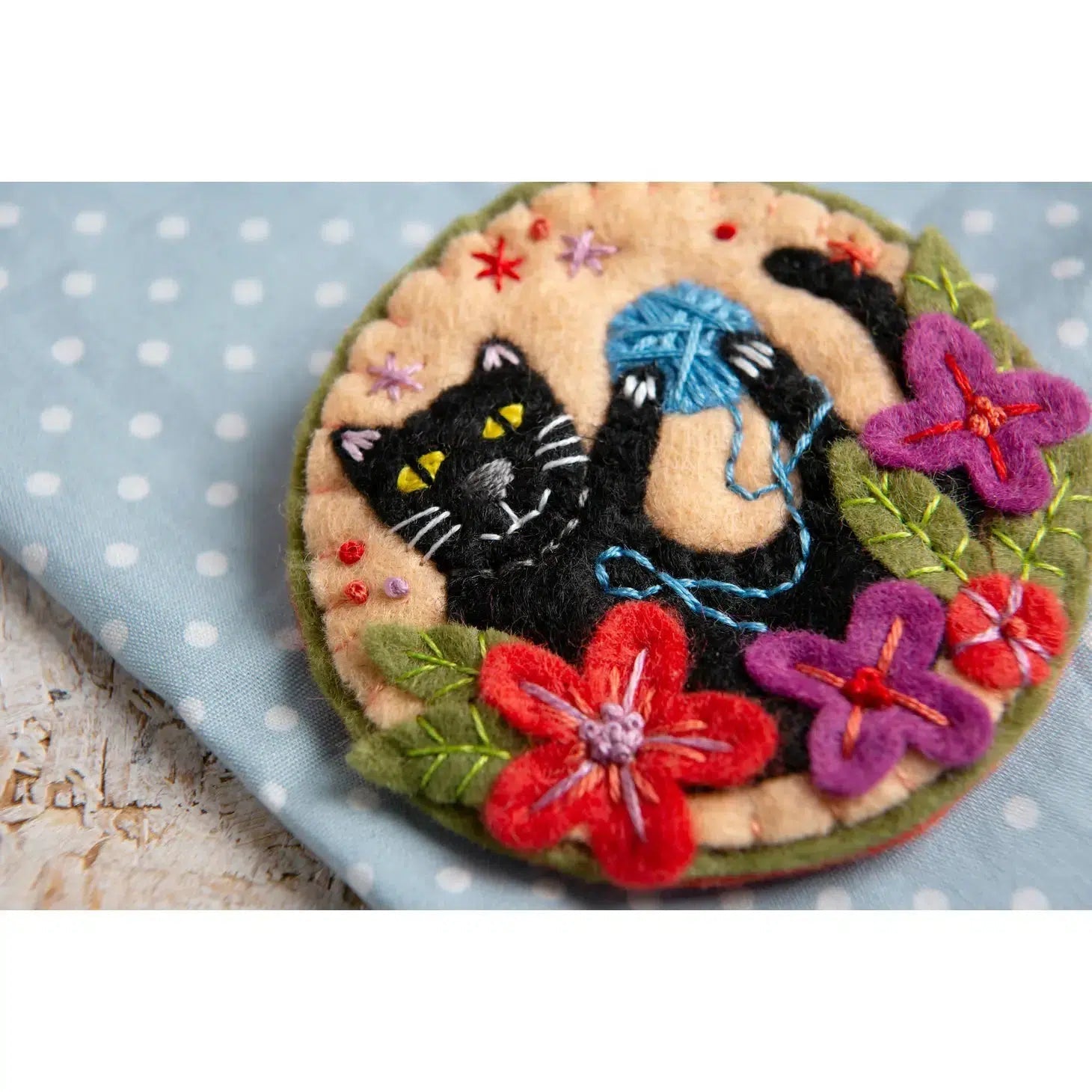 Learn hand embroidery and applique skills with this complete felt craft kit. This Black Cat wool felt brooch craft kit is a great way to get creative and discover this fun craft. Each kit comes with everything you need to make your very own unique hand-stitched feline brooch!